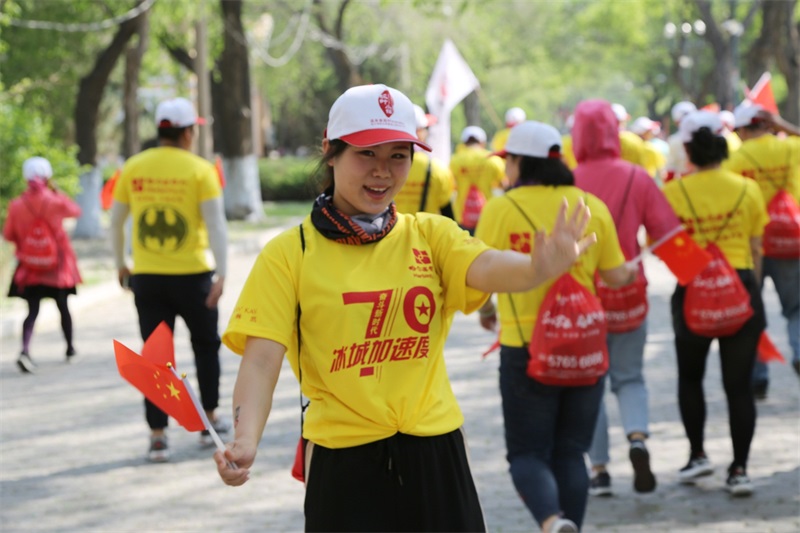 早上7時,市人民廣場人頭攢動,彩旗飄飄。哈三聯(lián)員工集結(jié)完畢,統(tǒng)一裝備,活力四射,整裝待發(fā)。