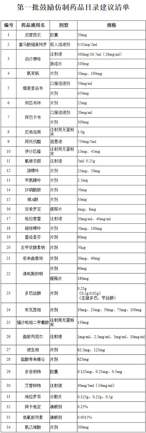 6月20日,國家衛(wèi)生健康委員會官網(wǎng)對首批鼓勵仿制藥品目錄建議清單予以公示。