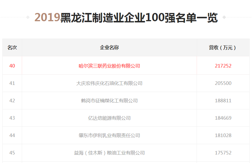 2019黑龍江企業(yè)100強(qiáng)正式揭曉。