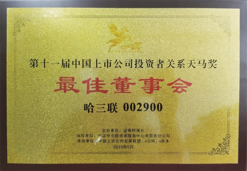 由證券時(shí)報(bào)社主辦,中國(guó)證監(jiān)會(huì)中證中小投資者服務(wù)中心擔(dān)任指導(dǎo)單位的“第十一屆中國(guó)上市公司投資者關(guān)系天馬獎(jiǎng)”獲獎(jiǎng)榜單于近日揭曉,我公司榮獲“上市公司投資者關(guān)系天馬獎(jiǎng)最佳董事會(huì)獎(jiǎng)”。
