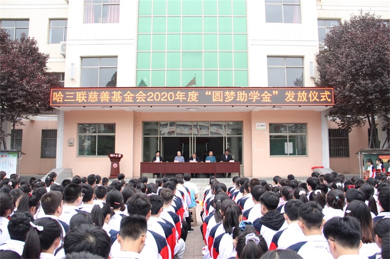 9月21日上午,哈三聯(lián)慈善基金會(huì)第三屆“圓夢(mèng)助學(xué)金”發(fā)放儀式在山西省稷山縣稷山中學(xué)舉行。此次受資助學(xué)生共有13名,均為2020年考取一本院校品學(xué)兼優(yōu)的貧困生,哈三聯(lián)慈善基金會(huì)每年將向受助學(xué)生資助學(xué)費(fèi)、住宿費(fèi)7000元,直至學(xué)生完成大學(xué)階段學(xué)業(yè)為止。哈三聯(lián)慈善基金會(huì)理事秦劍濤、副秘書長(zhǎng)王勇,稷山中學(xué)校長(zhǎng)王宇,副校長(zhǎng)陳永明、閆俊東等校方領(lǐng)導(dǎo)出席儀式為受助學(xué)生頒發(fā)助學(xué)金,稷山中學(xué)全體師生參加儀式。