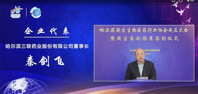 5月13日下午,哈爾濱新區(qū)生物醫(yī)藥行業(yè)協(xié)會(huì)成立大會(huì)暨新區(qū)委托招商簽約儀式舉行,我公司董事長(zhǎng)兼總裁秦劍飛先生受邀參加大會(huì)。