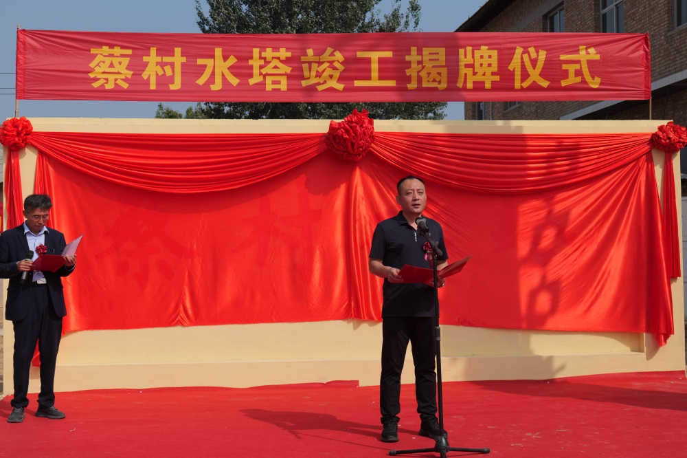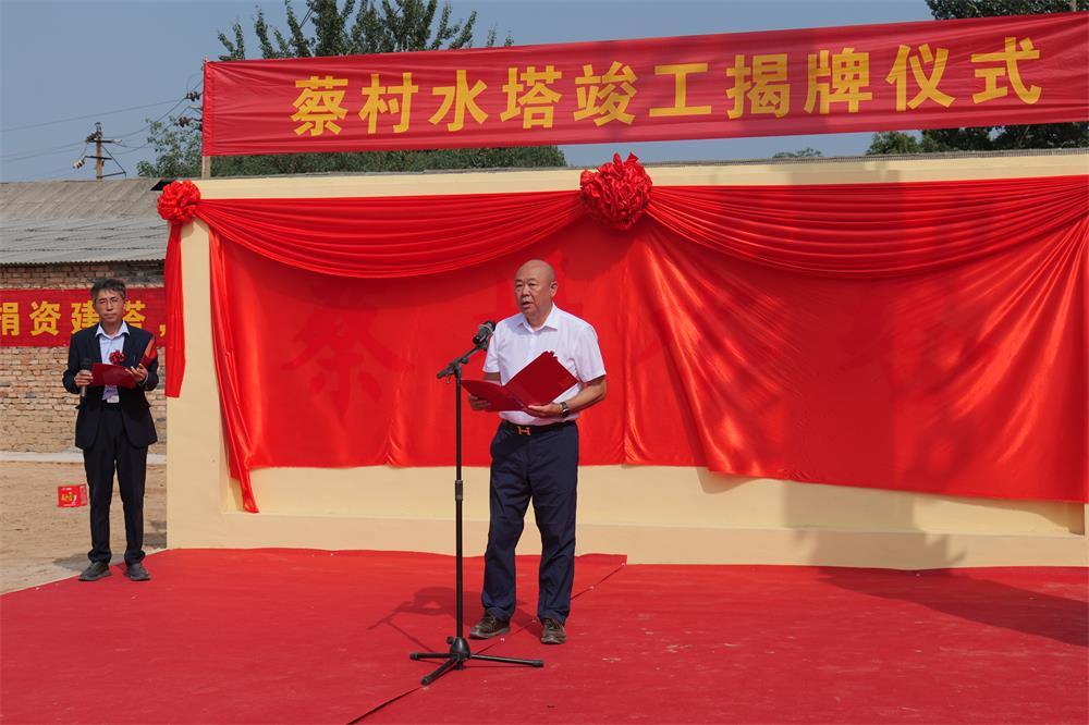 哈三聯(lián)董事長(zhǎng)兼總裁秦劍飛代表哈三聯(lián)及哈三聯(lián)慈善基金會(huì)致辭。他強(qiáng)調(diào),蔡村是養(yǎng)育他的土地,在外多年,他始終銘記回報(bào)家鄉(xiāng)的責(zé)任與使命。此次捐資興建水塔,不僅是為了讓鄉(xiāng)鄰百姓能有安全、穩(wěn)定、潔凈的水源,更是為了表達(dá)在外創(chuàng)業(yè)者對(duì)家鄉(xiāng)的深情厚誼,希望未來(lái)家鄉(xiāng)能更加繁榮、和諧。