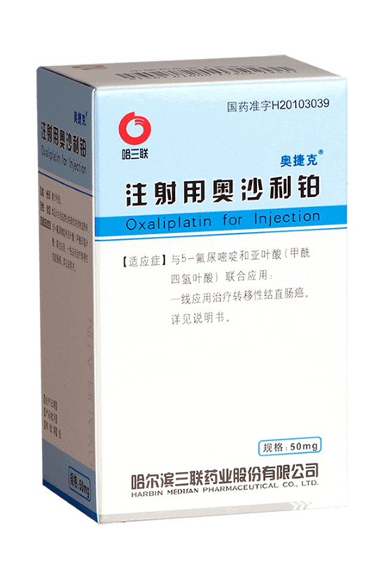 | 適應(yīng)癥 | 與5-氟尿嘧啶和亞葉酸(甲酰四氫葉酸)聯(lián)合應(yīng)用:一線應(yīng)用治療轉(zhuǎn)移性結(jié)直腸癌、輔助治療原發(fā)腫瘤完全切除后的IlI期 (Duke's C期)結(jié)腸癌 |