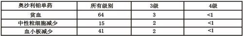 奧沙利鉑單藥(130mg/m2每3周重復(fù))發(fā)生各級(jí)別毒性的患者百分率。